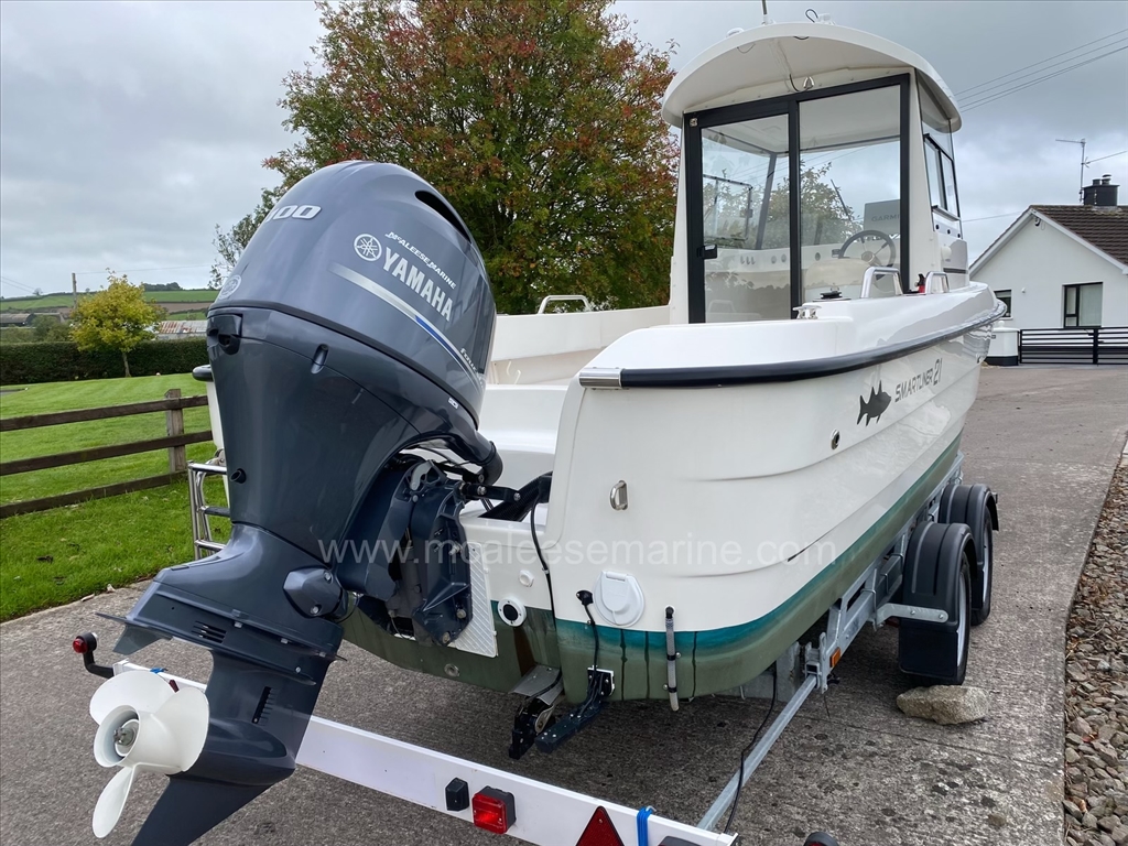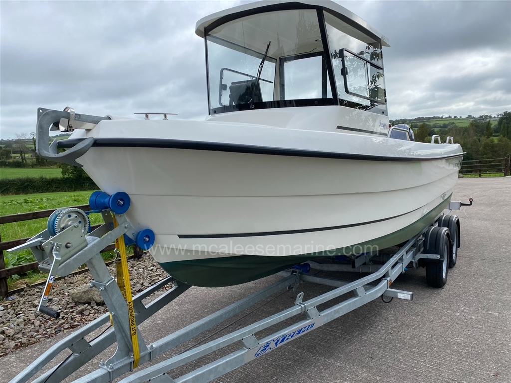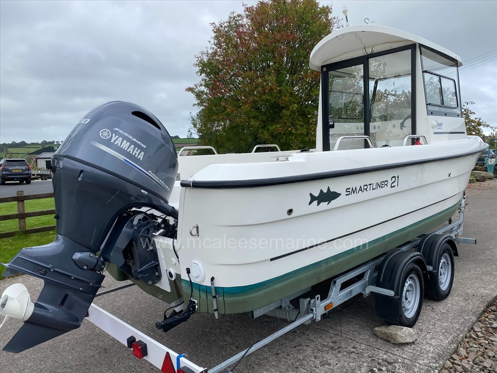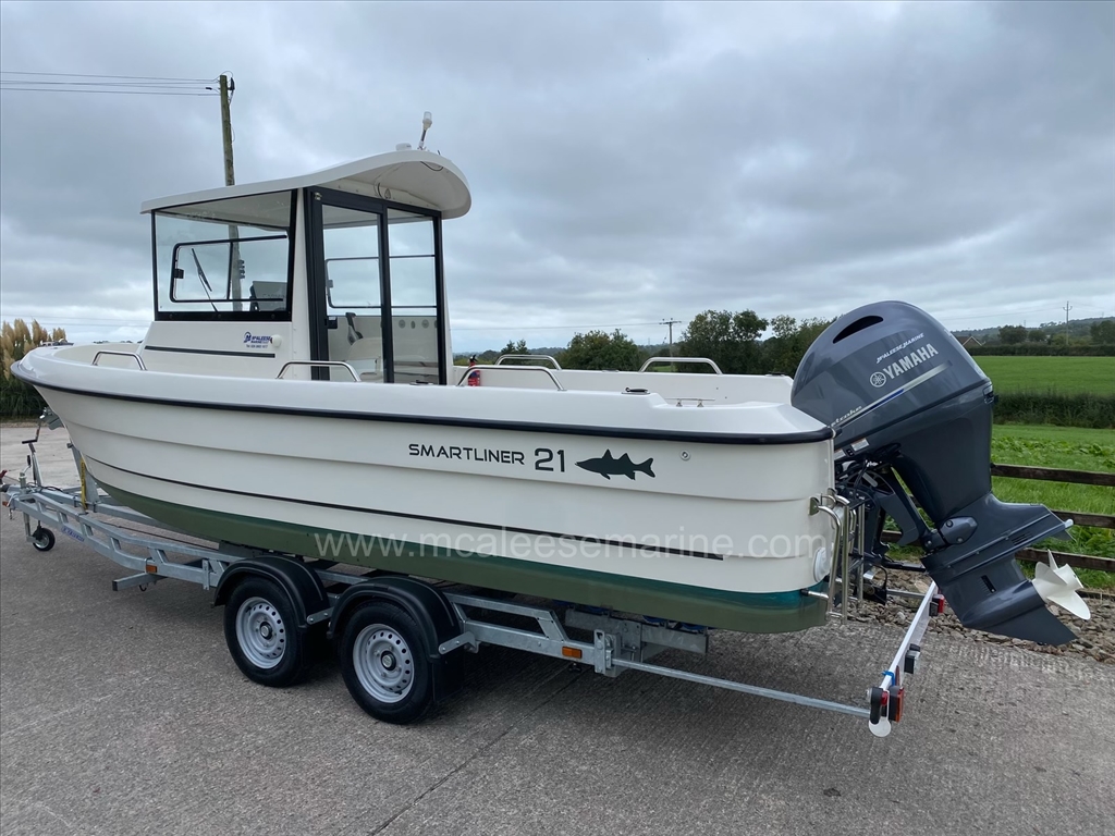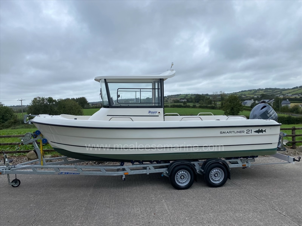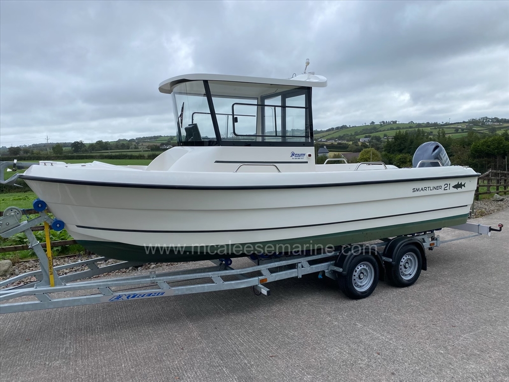 2023 Smartliner Fisher 21 pilothouse powered with Yamaha F100 Outboard on Extreme twin axle roller trailer.